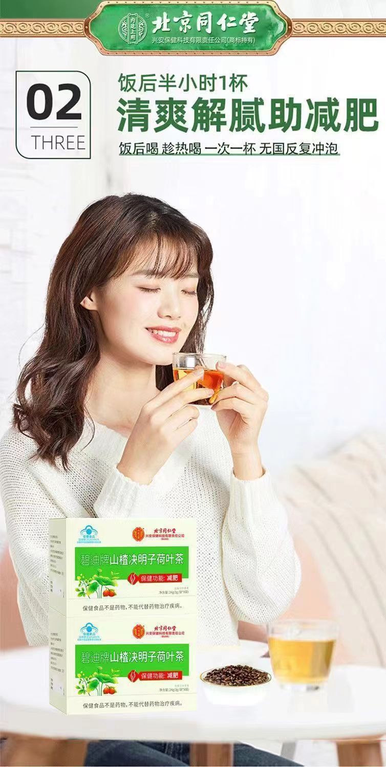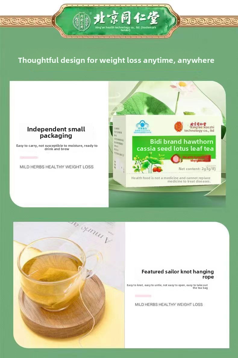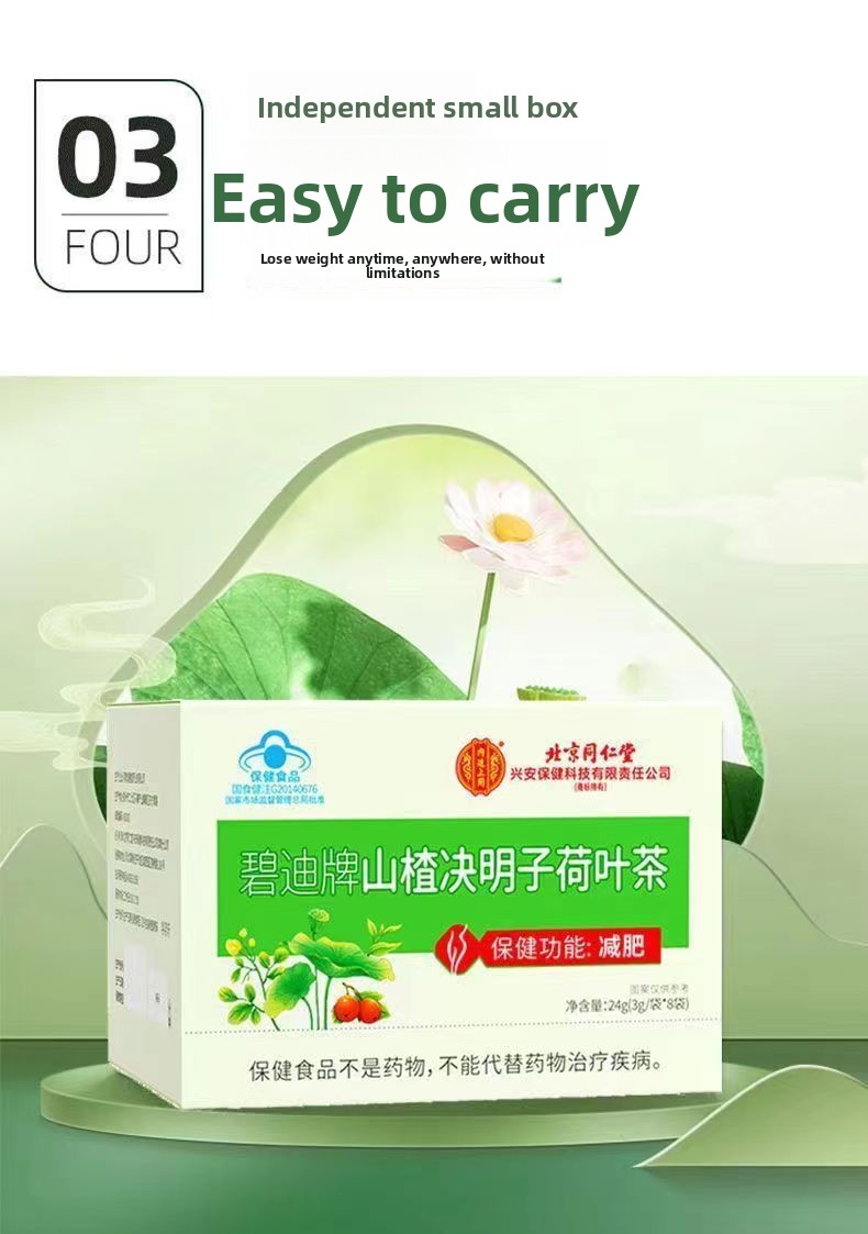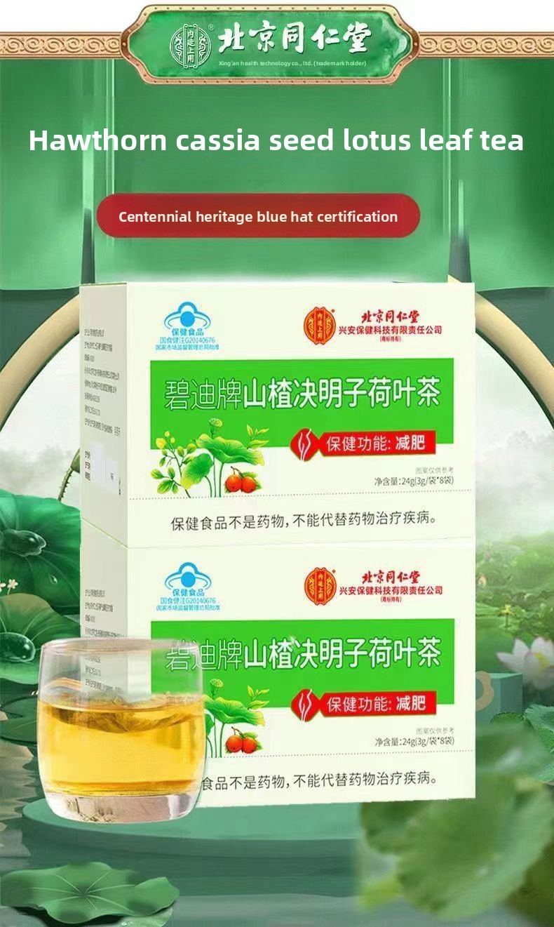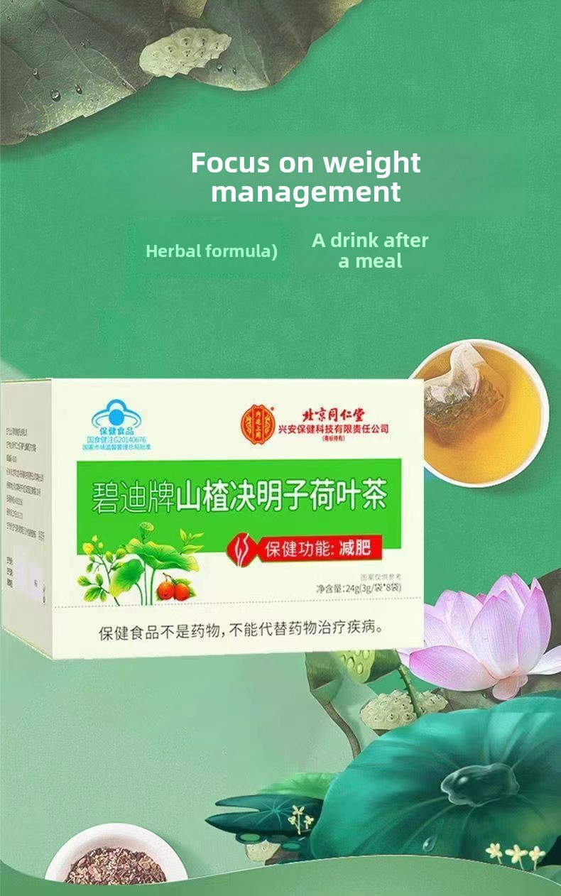 Traditional Formula: Authentic Beijing Tongrentang herbal tea combining hawthorn, cassia seed, and lotus leaf