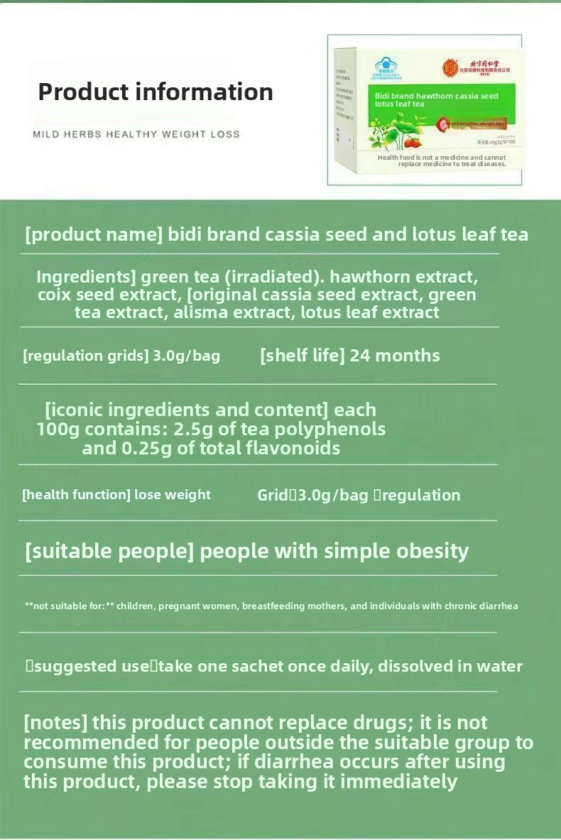 Ingredients: Hawthorn, cassia seed, lotus leaf